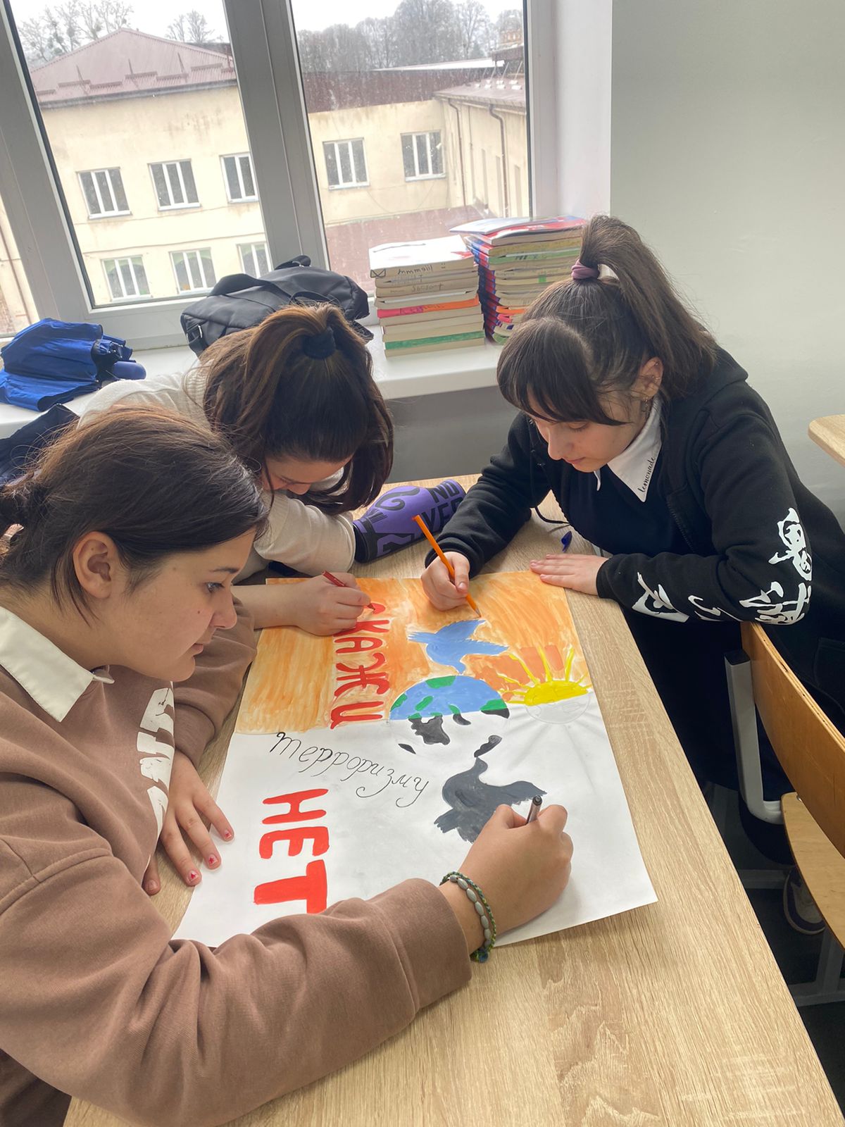 Учащиеся с удовольствием участвовали в мероприятии, отвечали на вопросы, рассуждали, вспоминали, что они знают о терроризме. В конце  занятия ребята получили домашнее задание - нарисовать плакаты на тему "Терроризму НЕТ!"